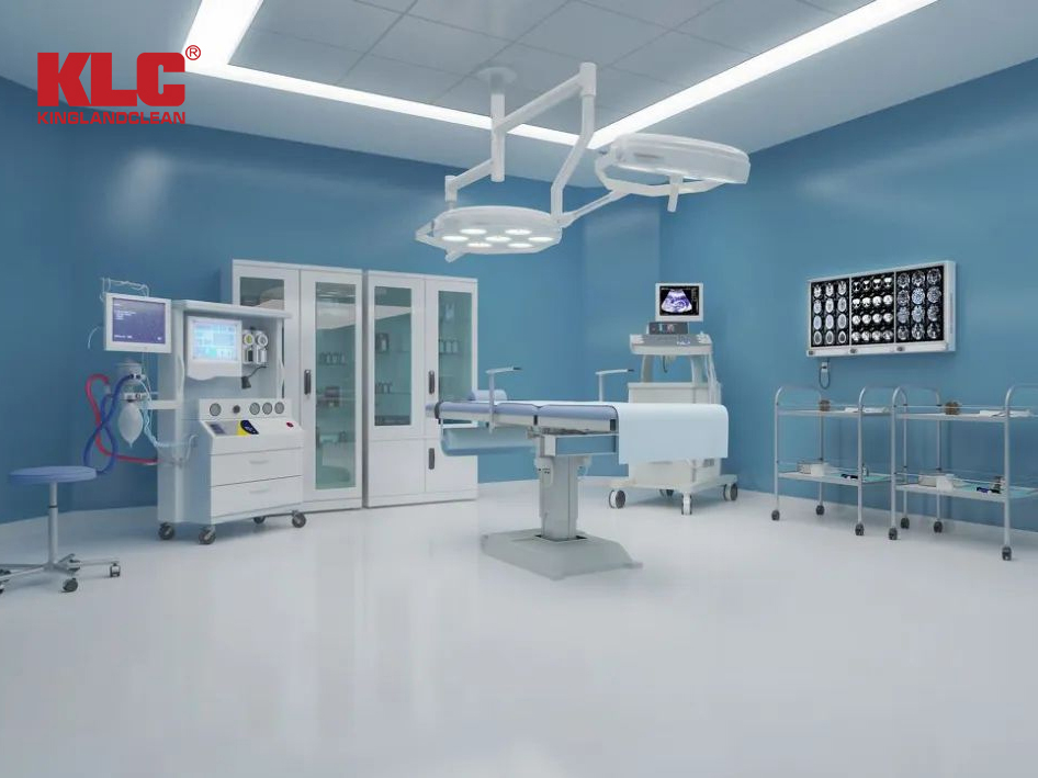 Why is an integrated high-efficiency filter used in the laminar flow ceiling of the operating room?